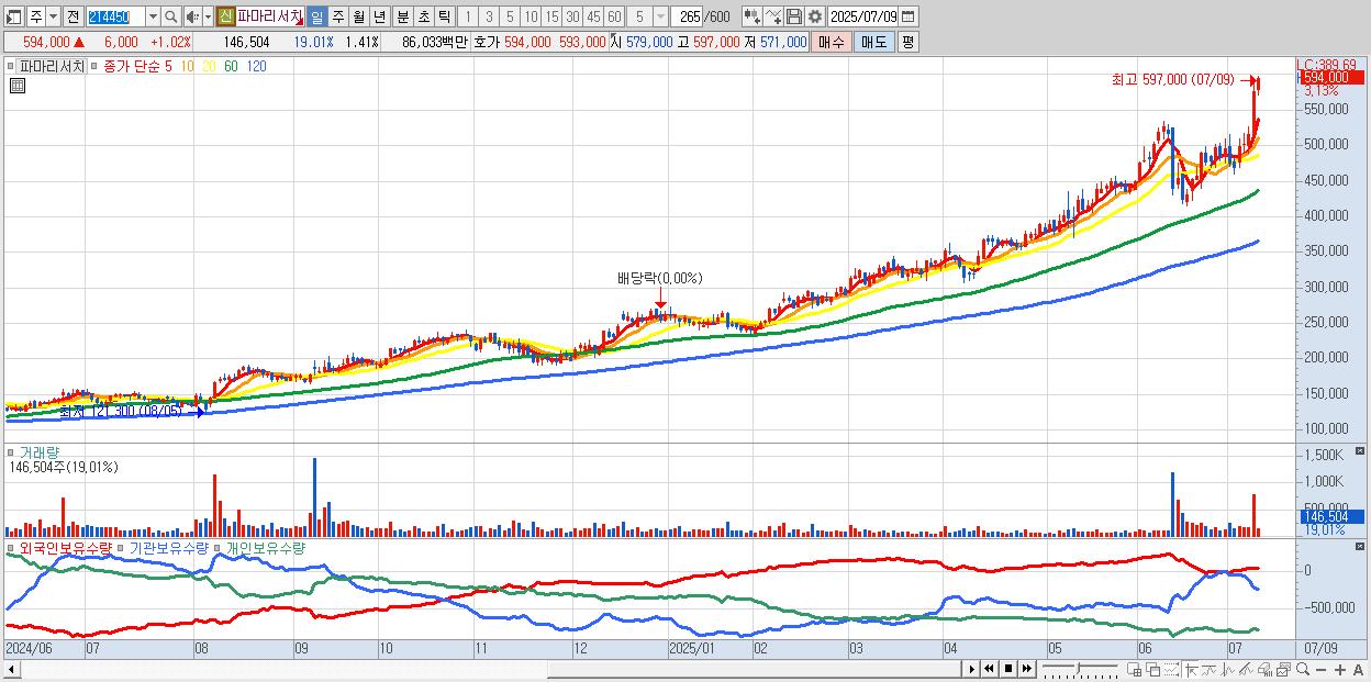 - 파마리서치 (594,000원 ▲ 1.02% , 시총: 61,715억, 외국인 순매수 거래금:132억)