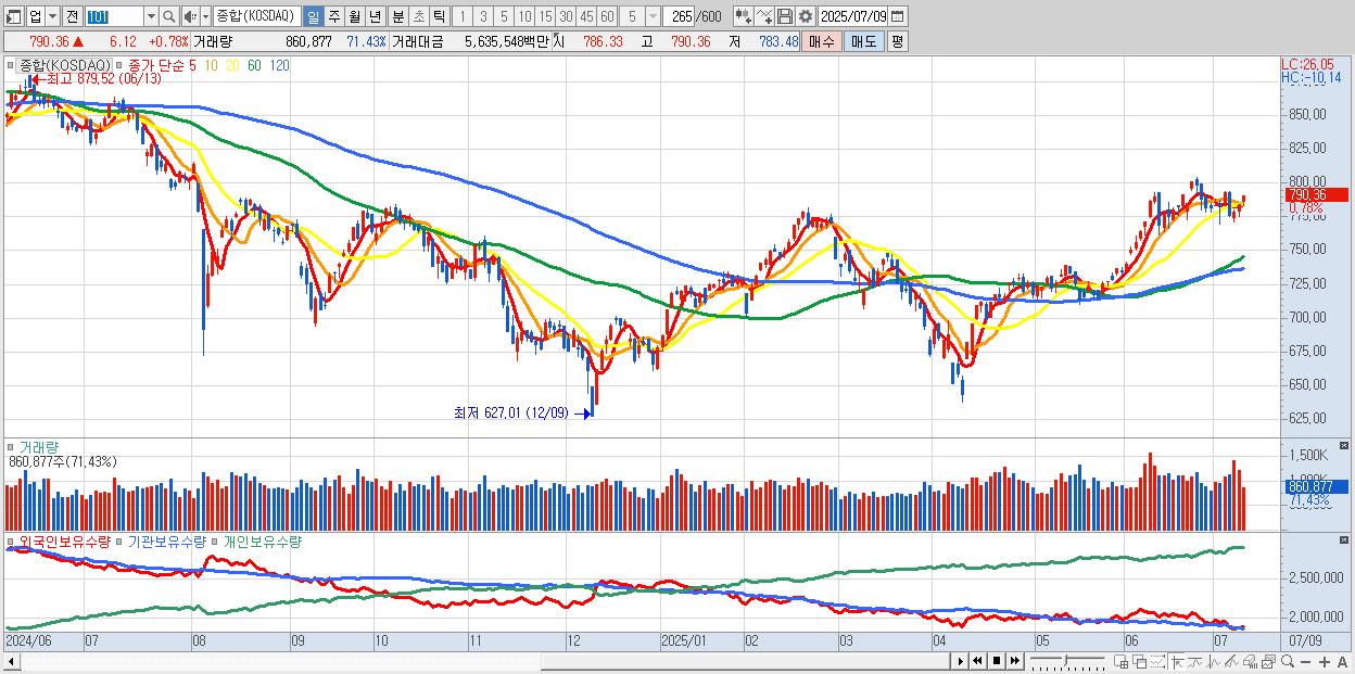 | 07/01 | 783.67 | ▲0.28% | -309억 | -325억 | 550억 | 83억 |