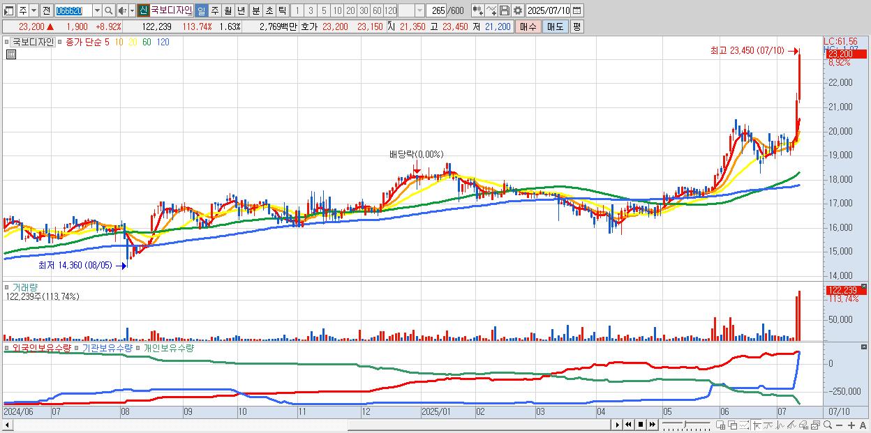 - 국보디자인 (23,200원 ▲ 8.92% , 시총: 1,740억, 거래량: 122,239, 거래대금:28억, KOSDAQ)