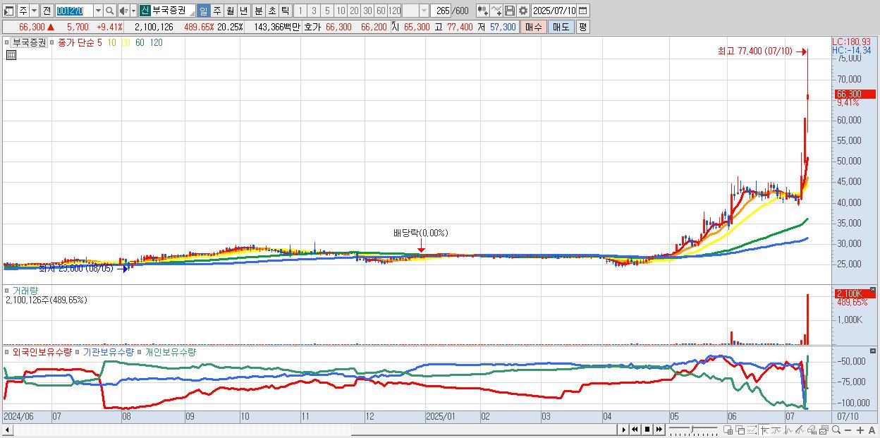 - 부국증권 (66,300원 ▲ 9.41% , 시총: 6,875억, 거래량: 2,100,126, 거래대금:1,434억, KOSPI)