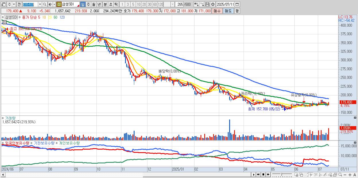 2.삼성SDI 179,400원 ▲ 5.34% (KOSPI, 006400)