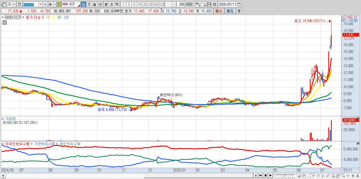 - NHN KCP (17,780원 ▲ 11.96% , 시총: 7,141억, 거래량: 19,932,535, 거래대금:3,580억, KOSDAQ)