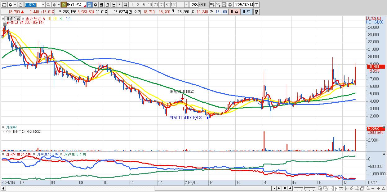 - 애경산업 (18,590원 ▲ 14.33% , 시총: 4,910억, 거래량: 1,624,581, 거래대금:290억)