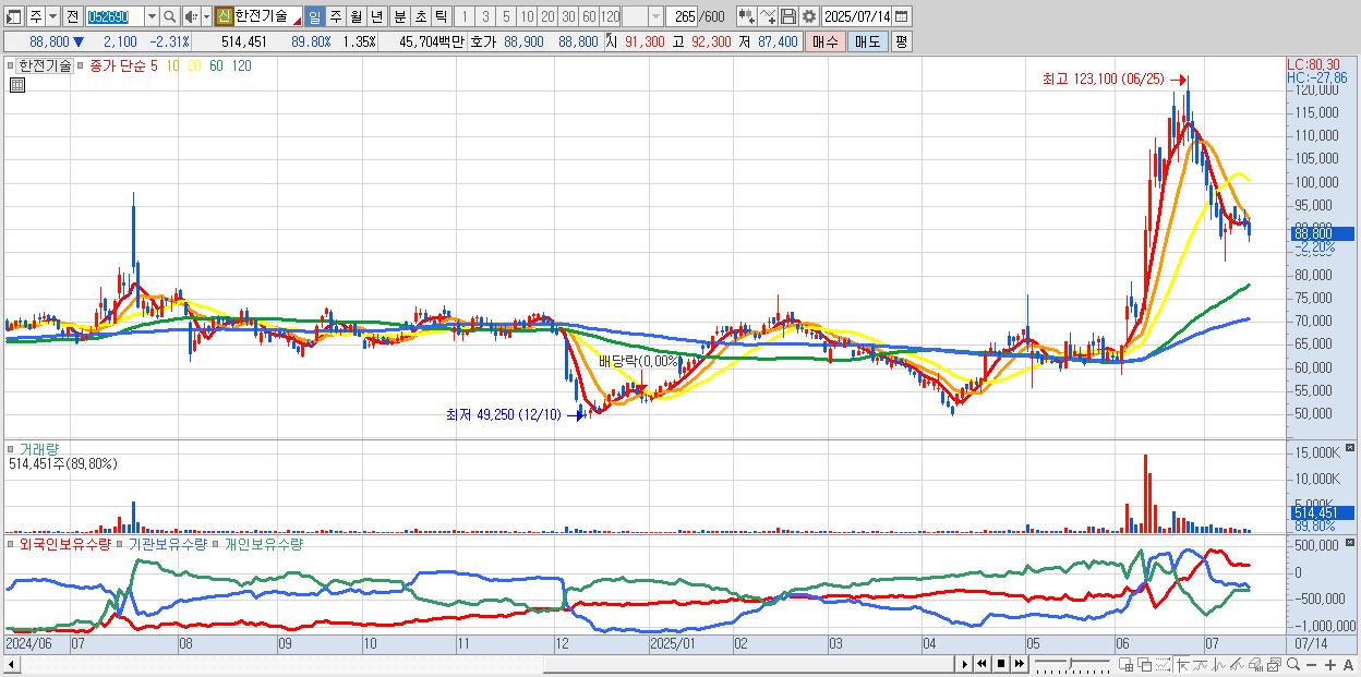 - 한전기술 (88,900원 ▼ -2.2% , 시총: 33,978억, 외국인 순매수 거래금:58억)