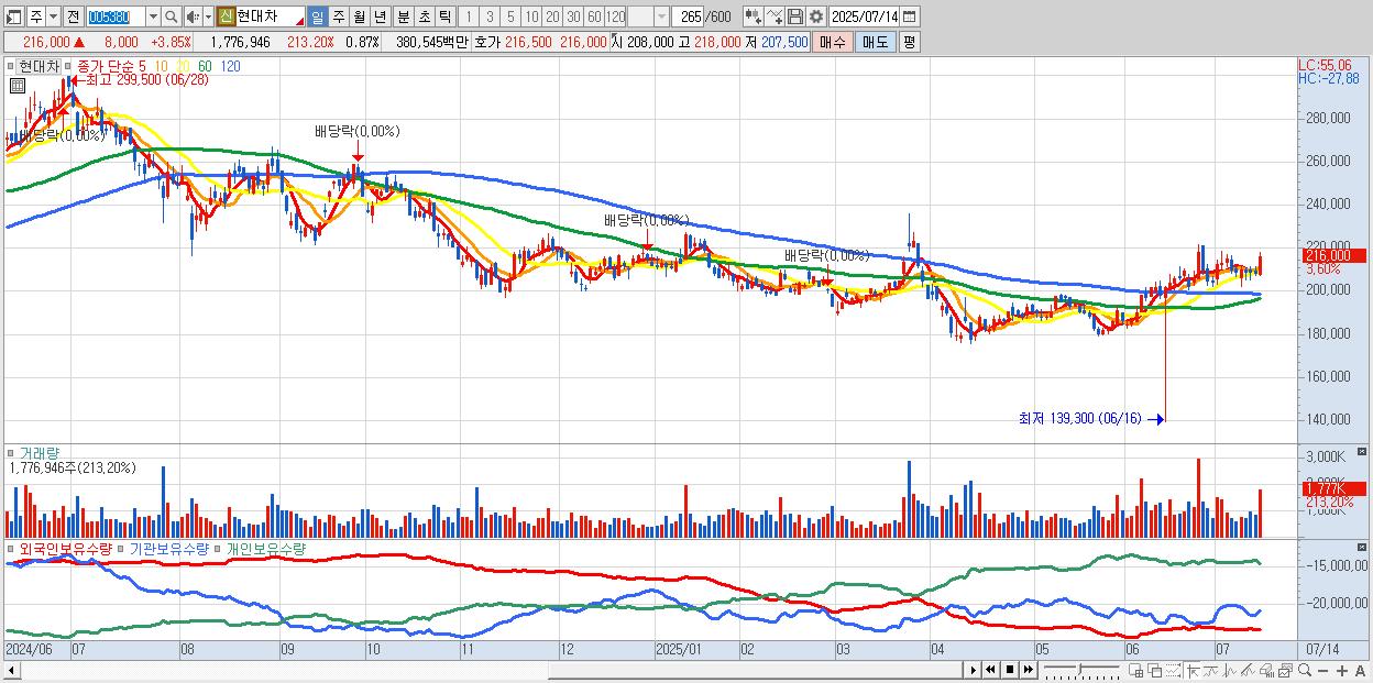 2.현대차 217,000원 ▲ 4.33% (KOSPI, 005380)
