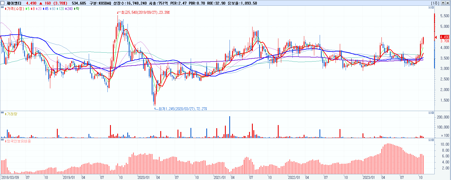 - 제이엠티 (4,490원 ▲ 3.7% , 시총: 752억, 거래량: 535,052, 거래대금:23억, KOSDAQ)