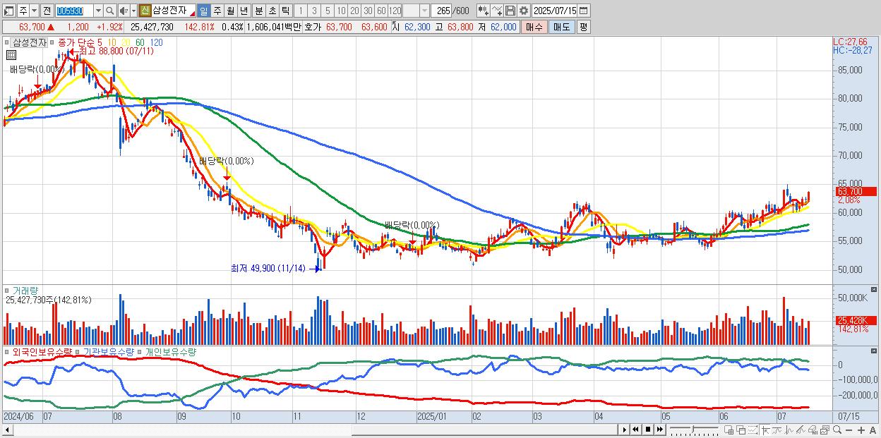 1.삼성전자 63,700원 ▲ 1.92% (KOSPI, 005930)