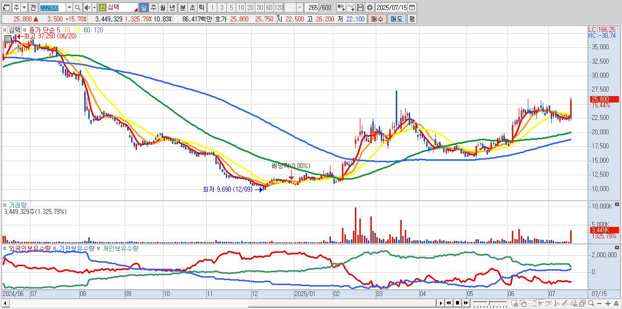 - 심텍 (25,500원 ▲ 14.35% , 시총: 8,123억, 외국인 순매수 거래금:65억)