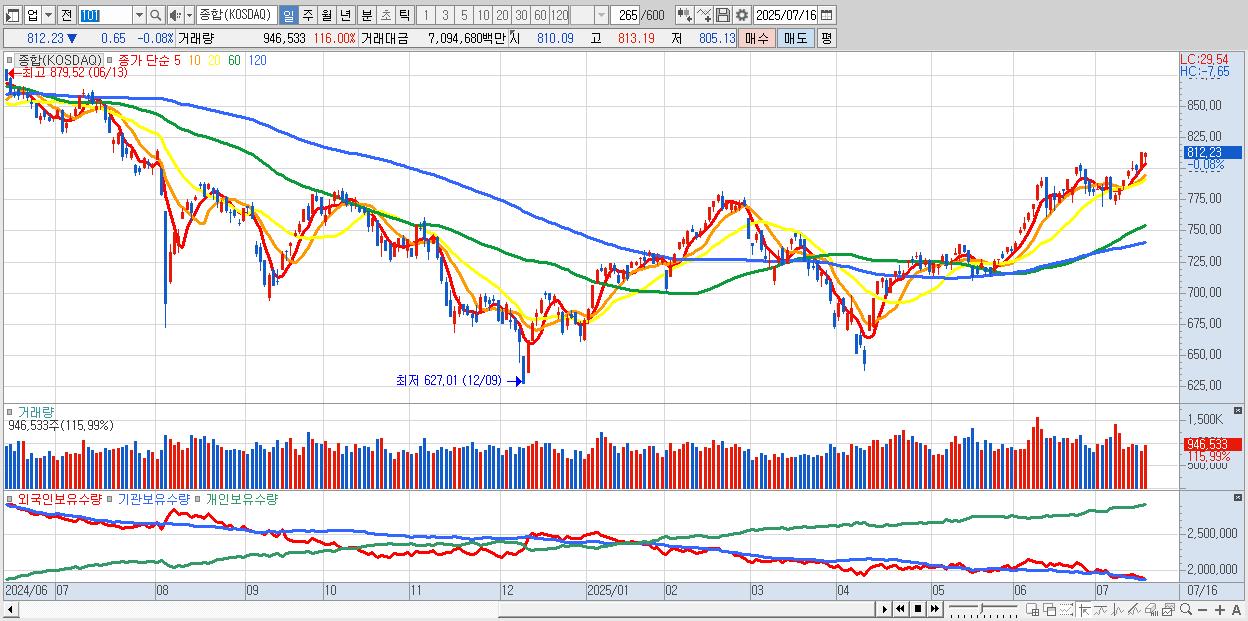 | 07/15 | 812.88 | ▲1.69% | -462억 | 698억 | -169억 | -67억 |