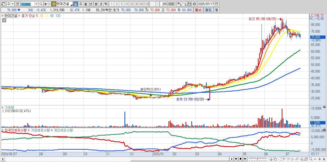 - 현대건설 (70,600원 ▼ -0.7% , 시총: 78,617억, 외국인 순매수 거래금:127억)