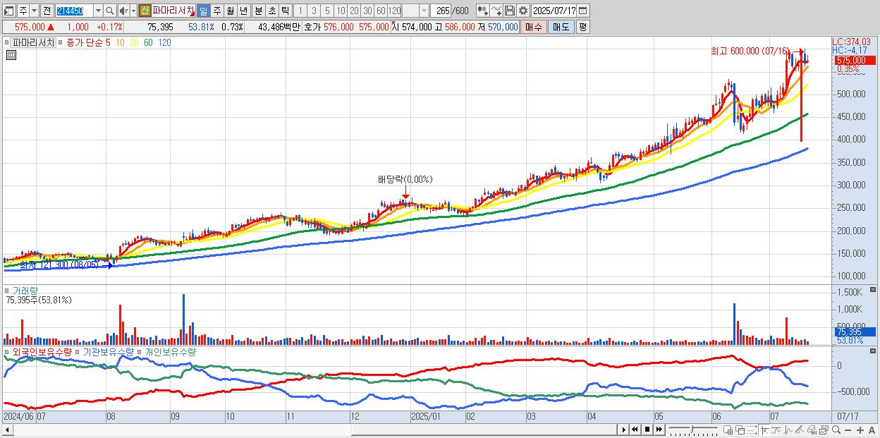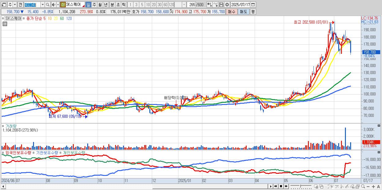 | 2025-07-16 | 3,734억 | -11억 | -660억 | 618억 | -3,681억 |