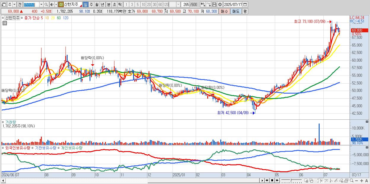 - 신한지주 (69,900원 ▲ 0.72% , 시총: 339,361억, 거래량: 1,556,798, 거래대금:1,081억)