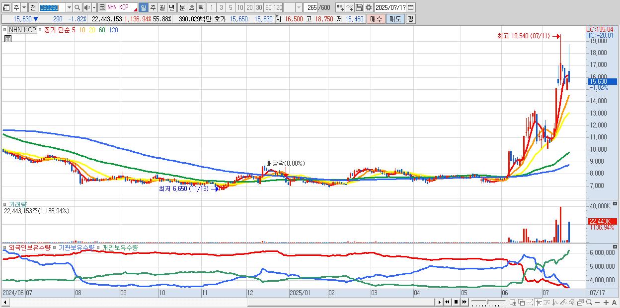 - NHN KCP (16,200원 ▲ 1.76% , 시총: 6,506억, 거래량: 6,546,031, 거래대금:1,128억)