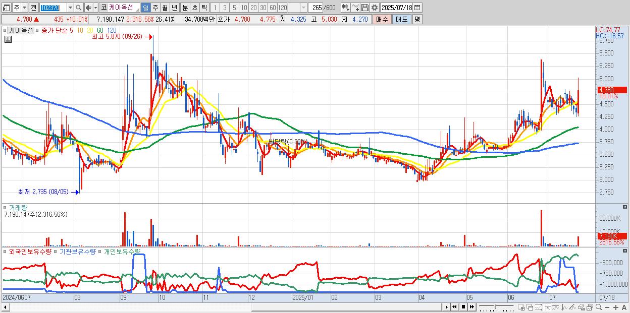 - 케이옥션 (4,780원 ▲ 10.01% , 시총: 1,302억, 거래량: 7,190,147, 거래대금:347억)