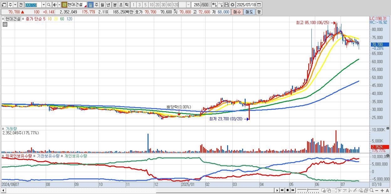 - 현대건설 (70,900원 ▲ 0.42% , 시총: 78,951억, 외국인 순매수 거래금:79억)