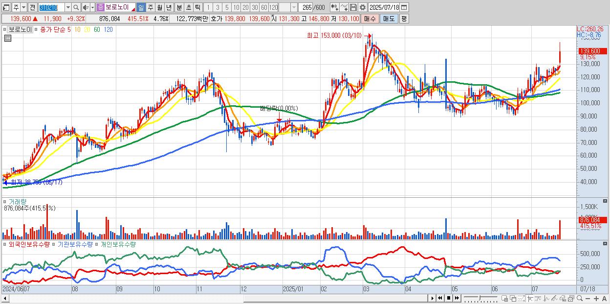 - 보로노이 (142,300원 ▲ 11.43% , 시총: 26,171억, 외국인 순매수 거래금:70억)