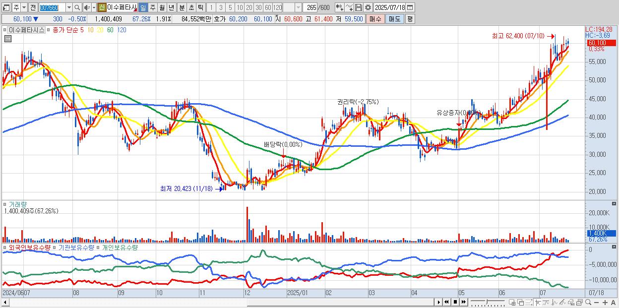 - 이수페타시스 (60,300원 ▼ -0.17% , 시총: 44,266억, 외국인 순매수 거래금:89억)