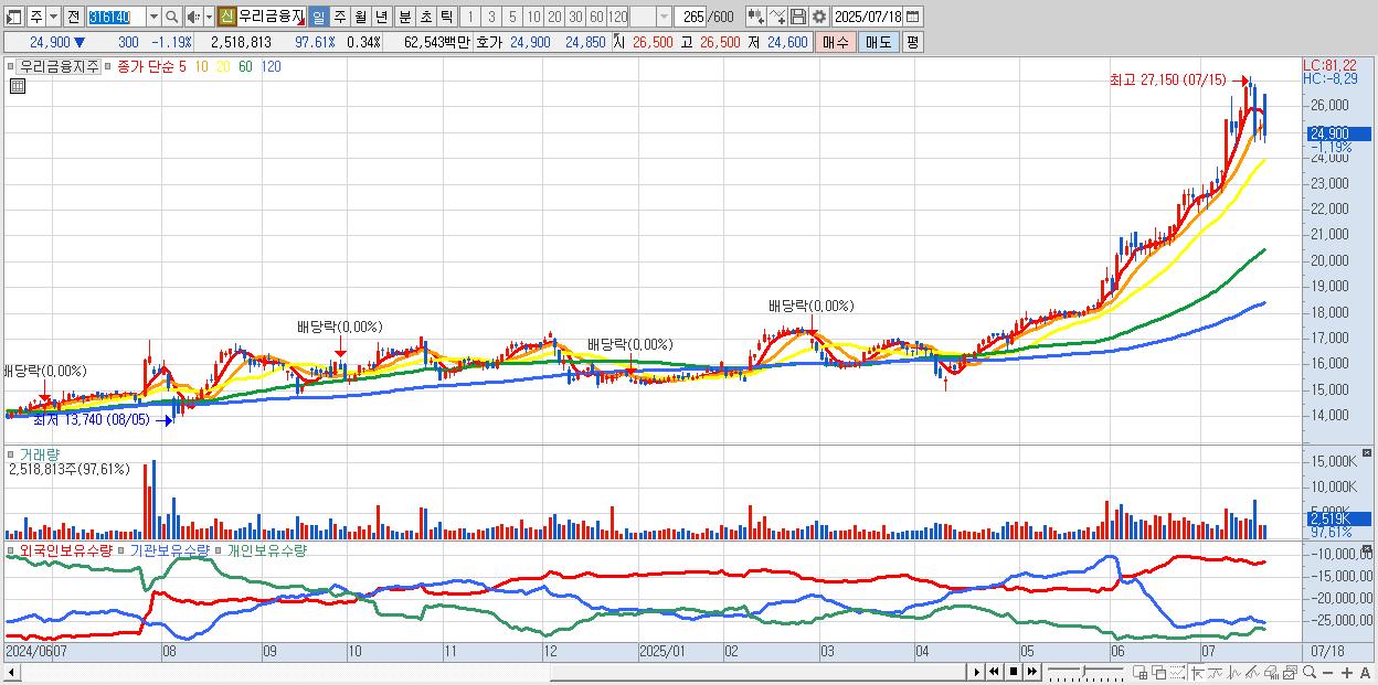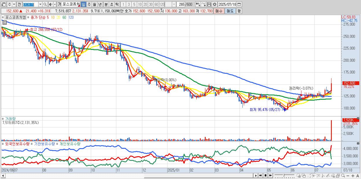 | 2025-07-16 | 3,734억 | -11억 | -660억 | 618억 | -3,681억 |