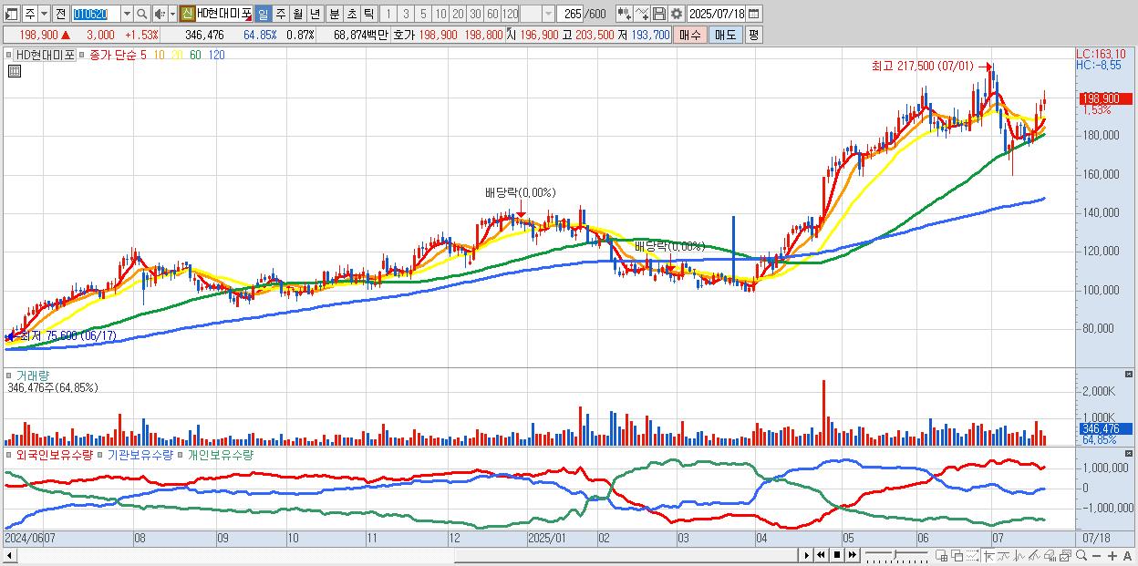 - HD현대미포 (200,000원 ▲ 2.09% , 시총: 79,884억, 외국인 순매수 거래금:71억)