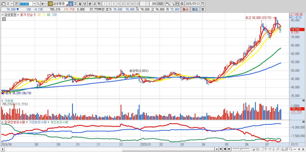 | 2025-07-17 | 5,238억 | 16억 | 1,238억 | 811억 | -7,303억 |