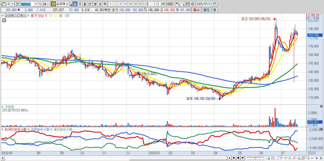 29.삼성에스디에스 183,300원 ▼ -1.45% (KOSPI, 018260)