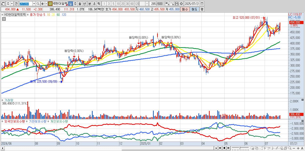 - HD현대일렉트릭 (495,000원 ▲ 2.59% , 시총: 178,433억, 외국인 순매수 거래금:471억)