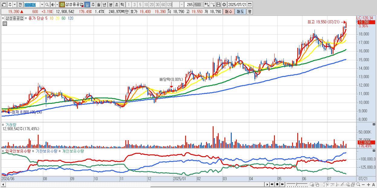 - 삼성중공업 (19,400원 ▲ 3.25% , 시총: 170,720억, 거래량: 7,802,994, 거래대금:1,506억)