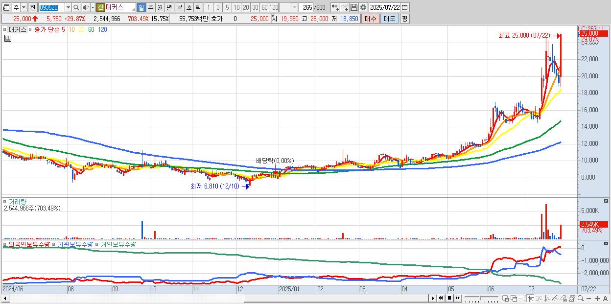 매커스 25,000원 ▲ 29.87% (KOSDAQ, 093520)