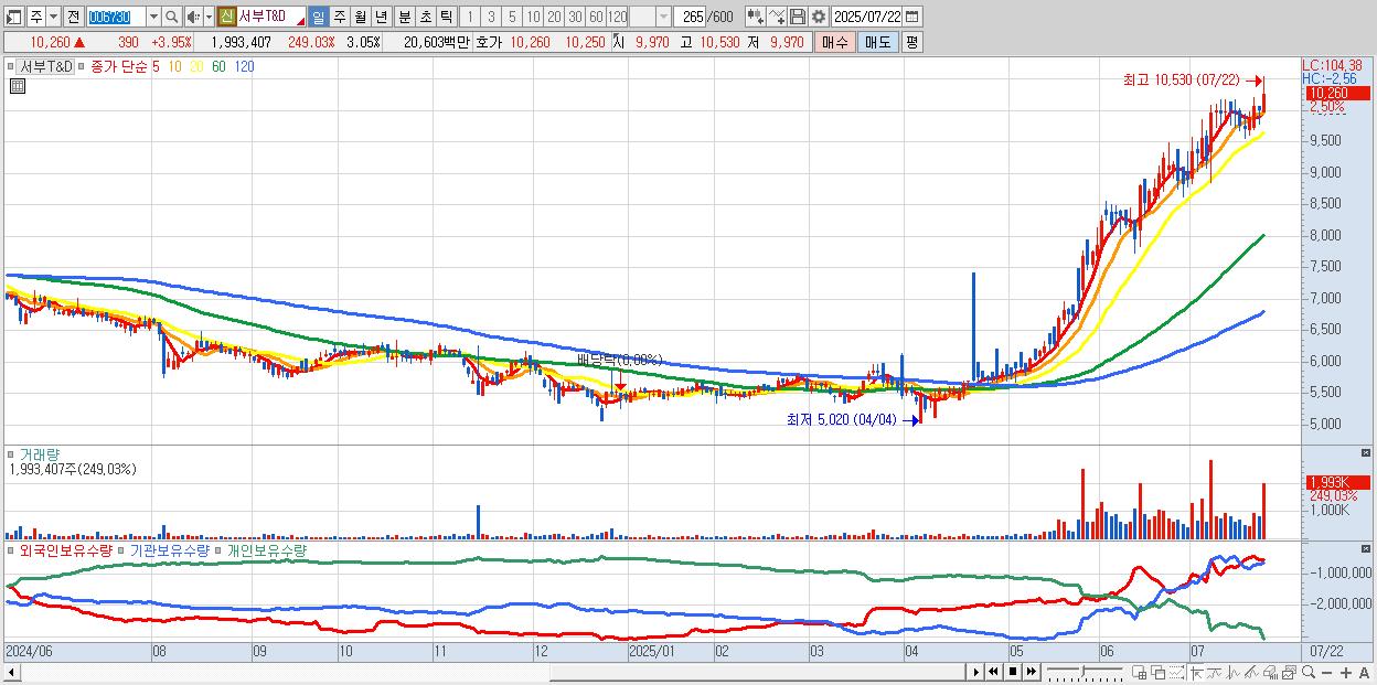 - 서부T&D (10,240원 ▲ 3.75% , 시총: 6,700억, 거래량: 1,407,150, 거래대금:146억, KOSDAQ)