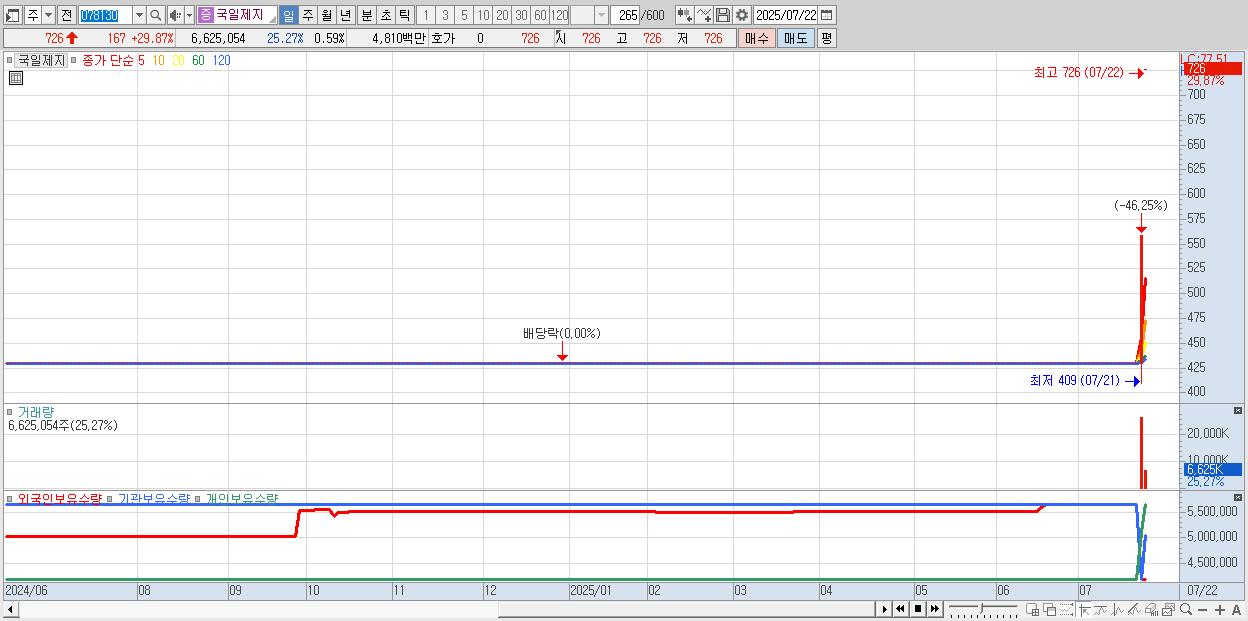 국일제지 726원 ▲ 29.87% (KOSDAQ, 078130)