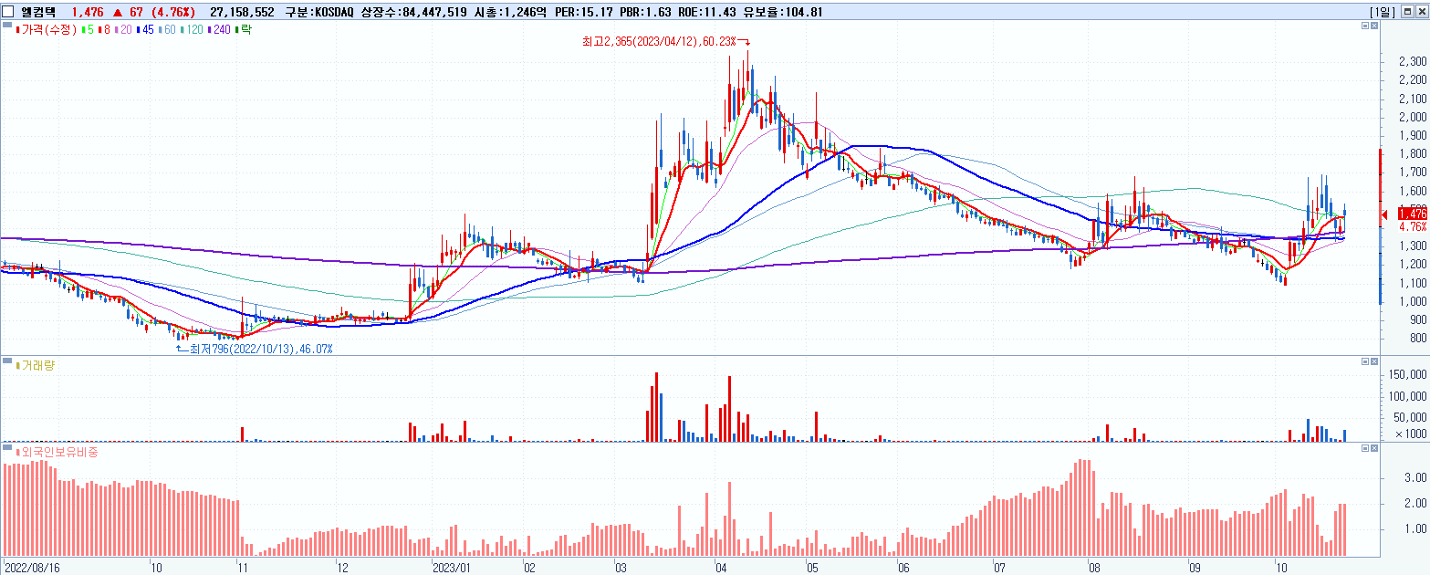 30.엘컴텍 1,476원 ▲ 4.76% (KOSDAQ, 037950)