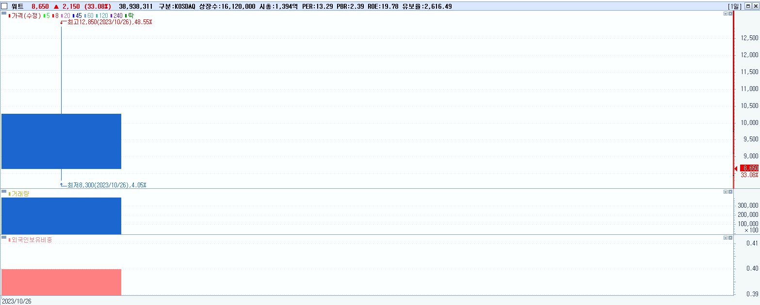 1.워트 8,650원 ▲ 33.08% (KOSDAQ, 396470)