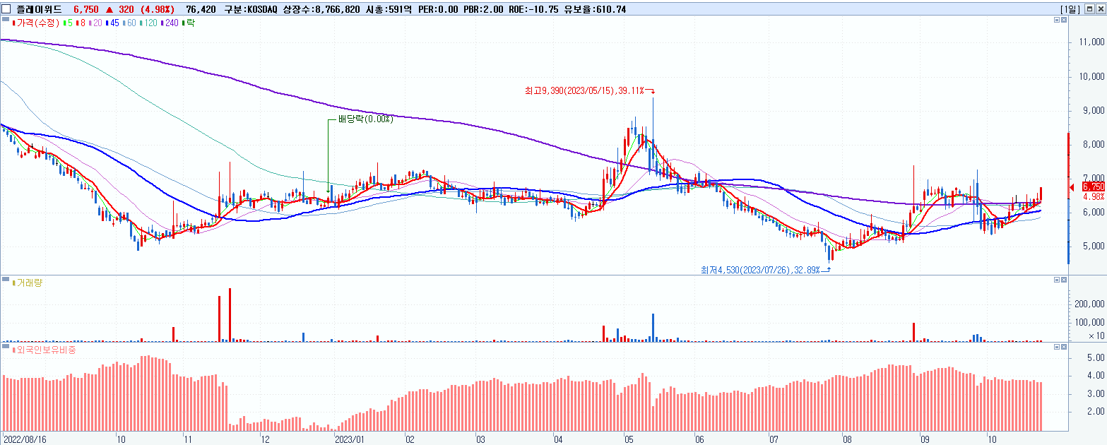 29.플레이위드 6,750원 ▲ 4.98% (KOSDAQ, 023770)
