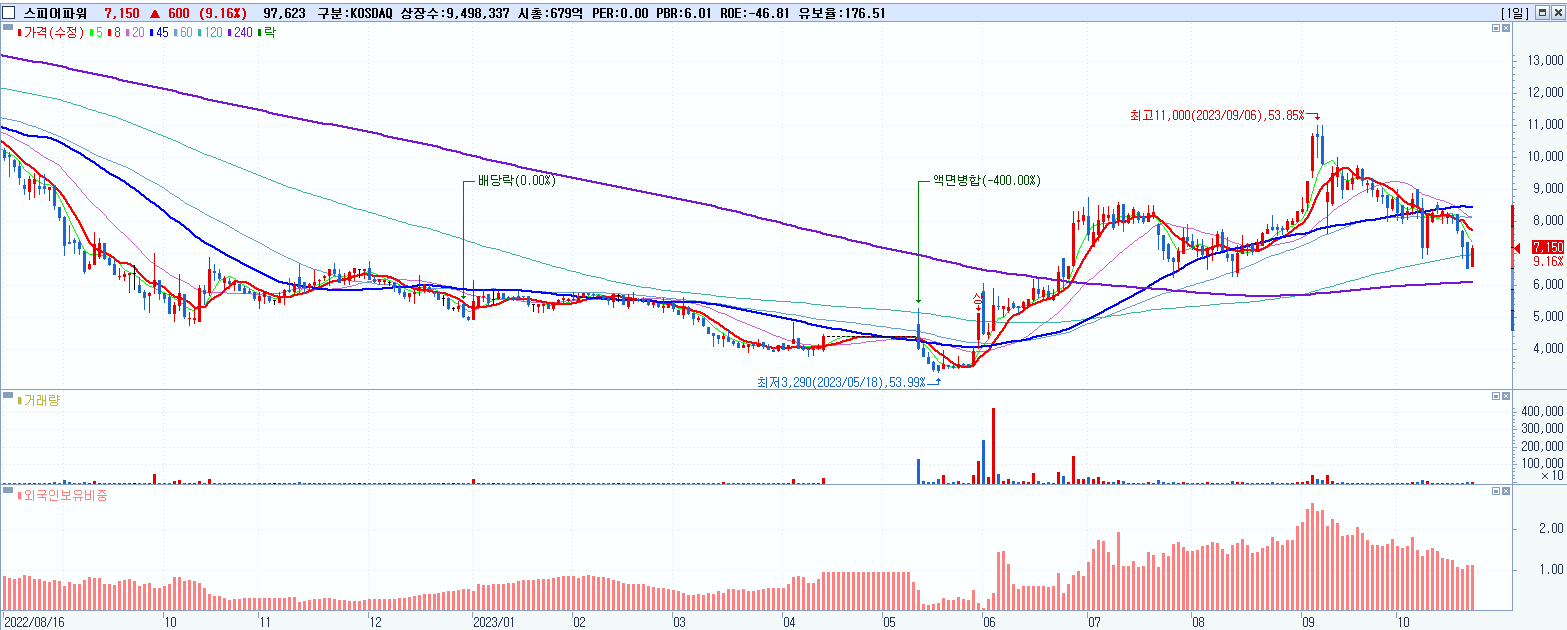 - 스피어파워 (7,150원 ▲ 9.16% , 시총: 679억, 거래량: 97,673, 거래대금:7억)