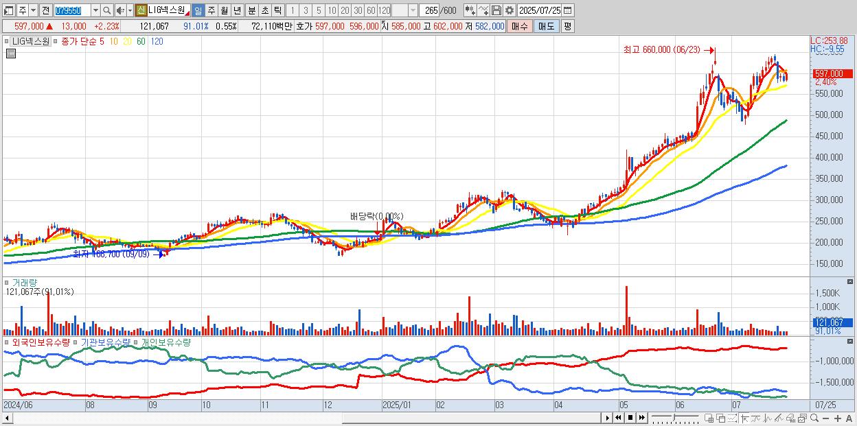 2025-07-23 목표주가: 740,000 투자의견: BUY 상승여력: 23.75% 제공처:한화투자증권/배성조