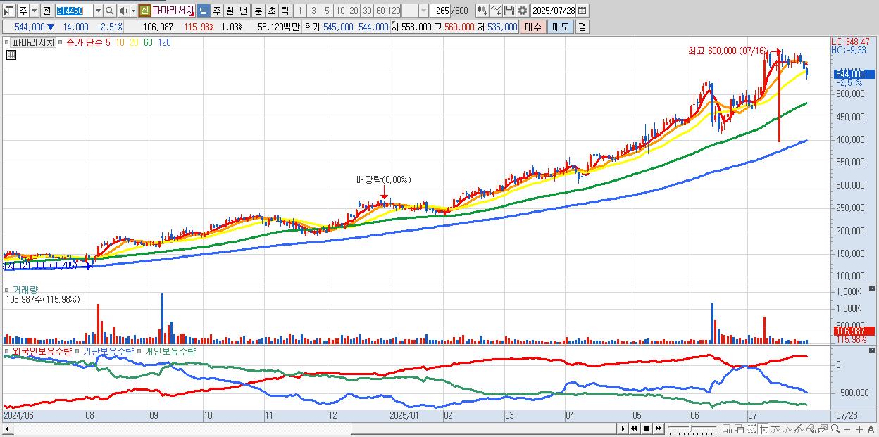 | 2025-07-24 | 415억 | 2억 | -621억 | 523억 | -318억 |
