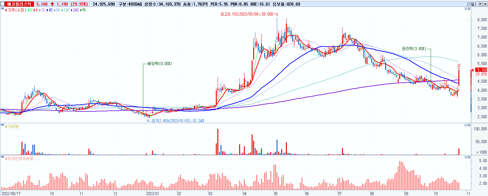 1.에코플라스틱 5,160원 ▲ 29.97% (KOSDAQ, 038110)