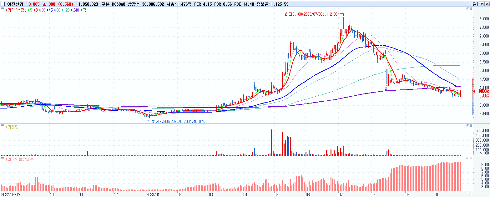 30.아진산업 3,805원 ▲ 8.56% (KOSDAQ, 013310)