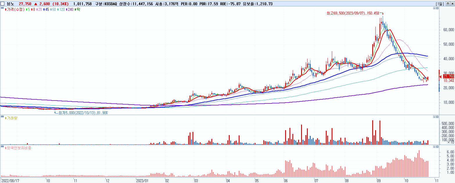 - 뷰노 (27,750원 ▲ 10.34% , 시총: 3,177억, 거래량: 1,019,456, 거래대금:272억)