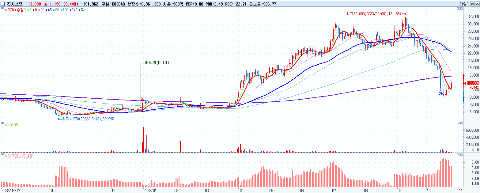 시총: 1,308억 거래량: 3,250,632 거래대금:490억