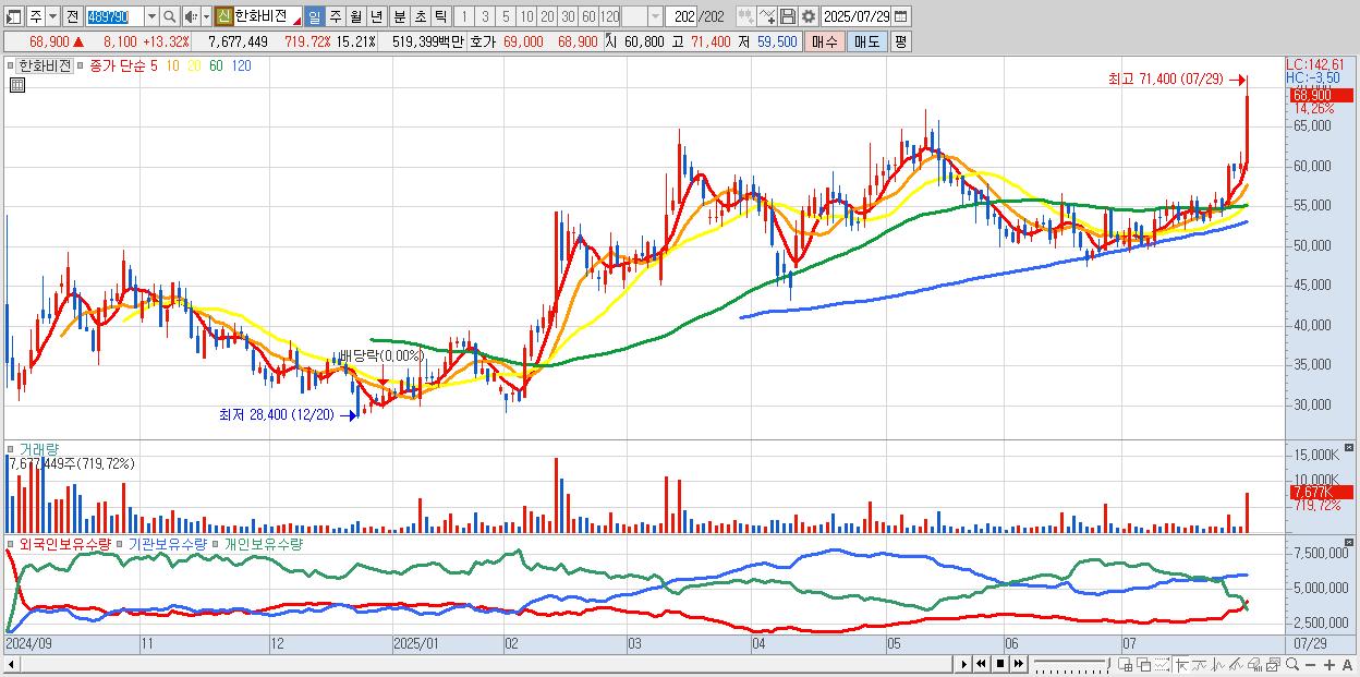 - 한화비전 (69,300원 ▲ 13.98% , 시총: 34,988억, 거래량: 4,458,889, 거래대금:3,015억)