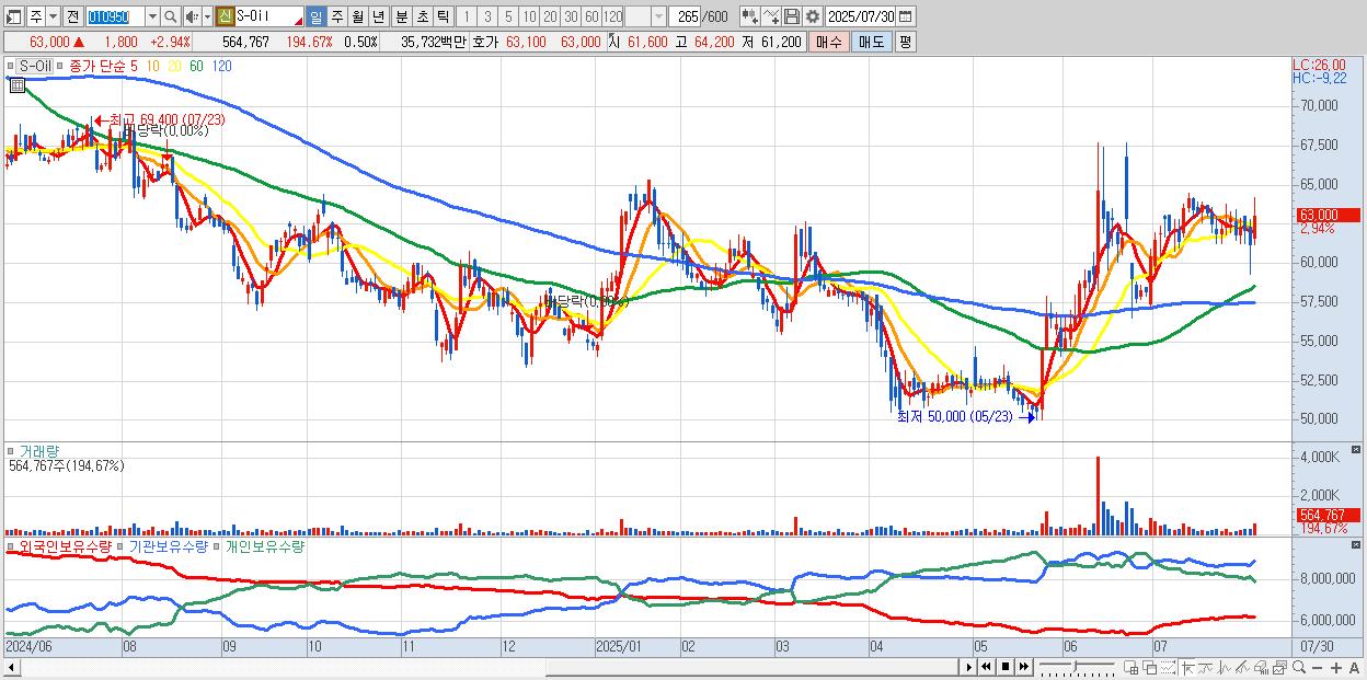 - S-Oil (63,200원 ▲ 3.27% , 시총: 71,152억, 외국인 순매수 거래금:102억)