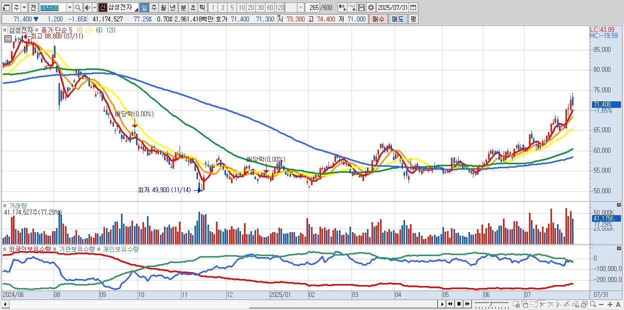 1.삼성전자 71,400원 ▼ -1.65% (KOSPI, 005930)