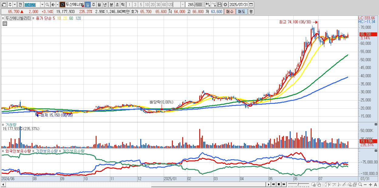 - 두산에너빌리티 (65,600원 ▲ 2.98% , 시총: 420,208억, 거래량: 10,172,066, 거래대금:6,616억)