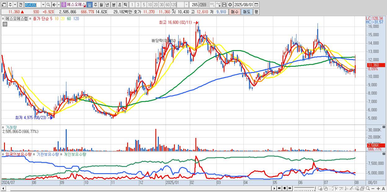 - 에스오에스랩 (10,990원 ▲ 5.37% , 시총: 1,943억, 거래량: 969,900, 거래대금:107억)
