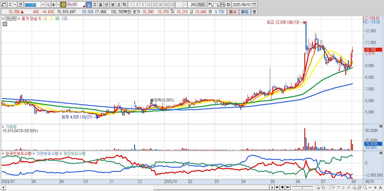 - 아난티 (10,420원 ▲ 4.72% , 시총: 9,235억, 거래량: 7,827,677, 거래대금:801억)
