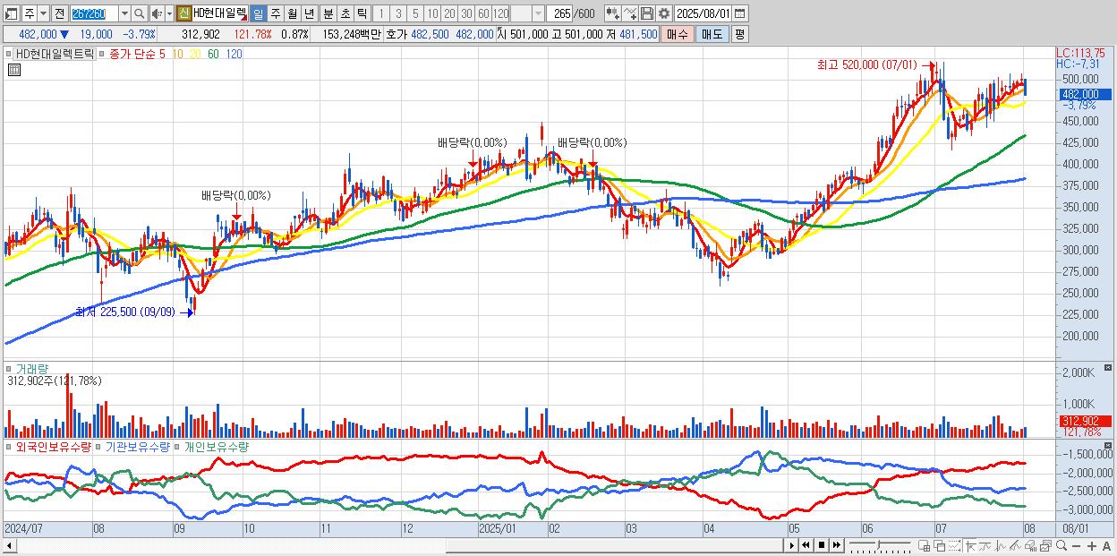 - HD현대일렉트릭 (484,000원 ▼ -3.39% , 시총: 174,468억, 거래량: 249,449, 거래대금:1,222억)