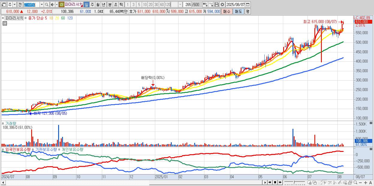 파마리서치 608,000원 ▲ 1.67% (KOSDAQ, 214450)