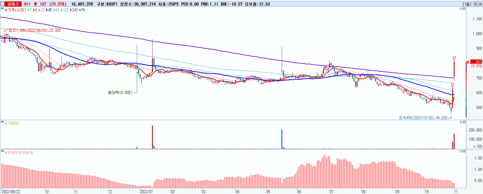 4.코아스 811원 ▲ 29.97% (KOSPI, 071950)