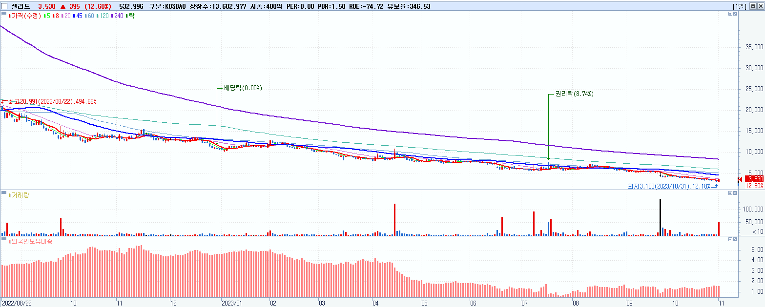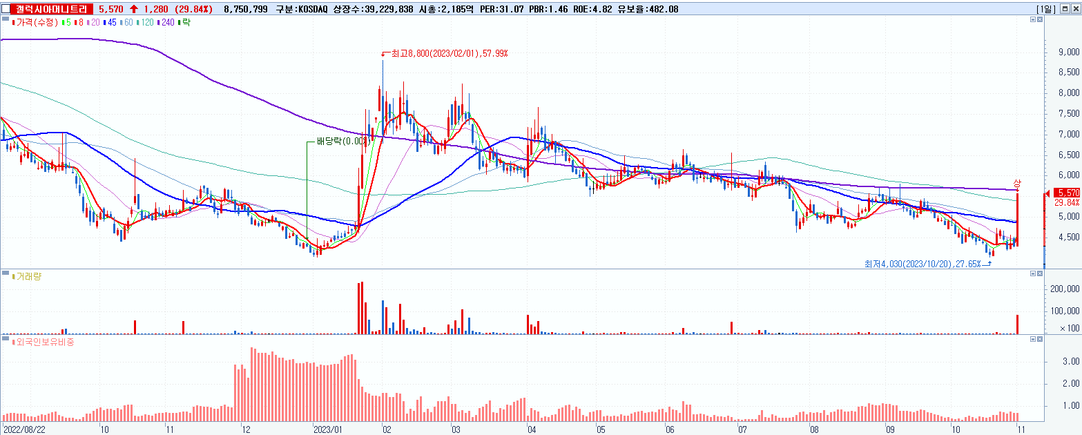 시총: 549억 거래량: 43,221,905 거래대금:573억